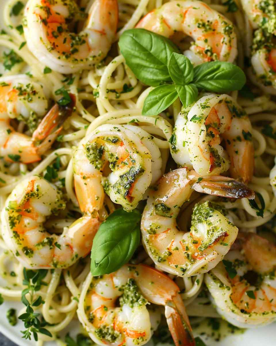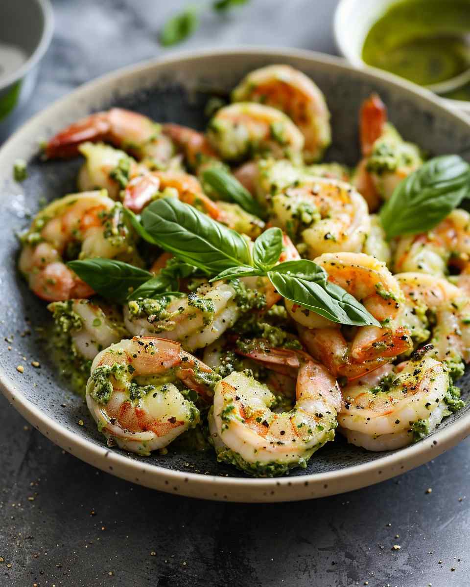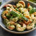 A rich and comforting creamy pesto shrimp dish made with tender shrimp in a velvety herb-infused sauce, ready in just 25 minutes.