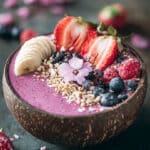 This 5-minute fruit smoothie bowl is my favorite way to start the day with color, flavor, and nutrition. It’s cold, creamy, and loaded with toppings that make every bite satisfying and fun. Whether I’m short on time or just want something refreshing and energizing, this recipe always hits the spot.