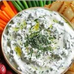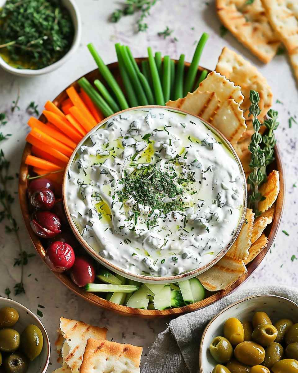 A quick and creamy herb and garlic dip made with Greek yogurt, fresh herbs, and lemon for a tangy and refreshing flavor.