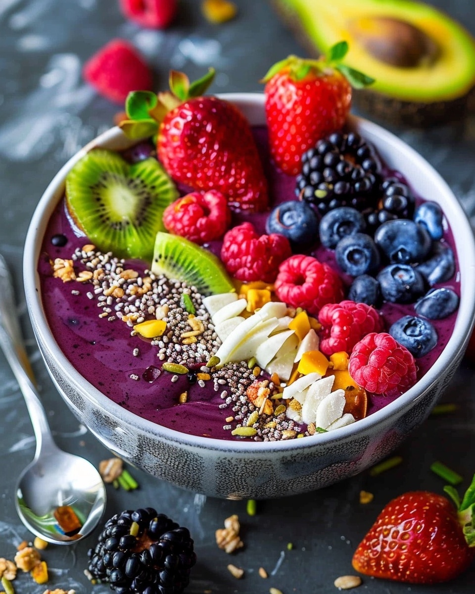 An acai bowl is a vibrant, nutrient-packed smoothie bowl topped with fresh fruits, granola, and other delicious add-ons. It’s refreshing, satisfying, and perfect for breakfast, post-workout fuel, or a healthy snack.