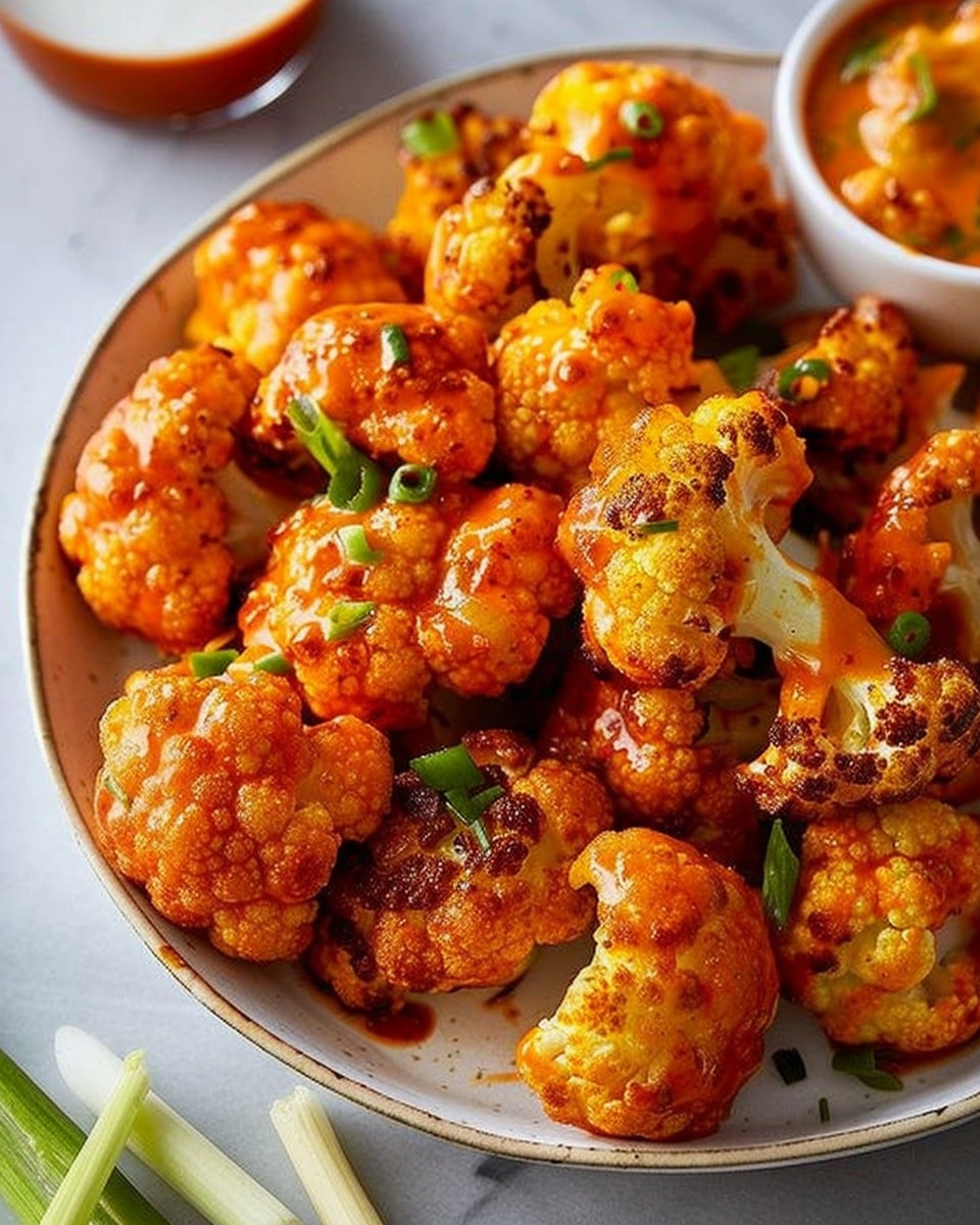 Crispy and spicy air fryer buffalo cauliflower coated in bold buffalo sauce, delivering big flavor with minimal oil for a lighter, satisfying snack or side.