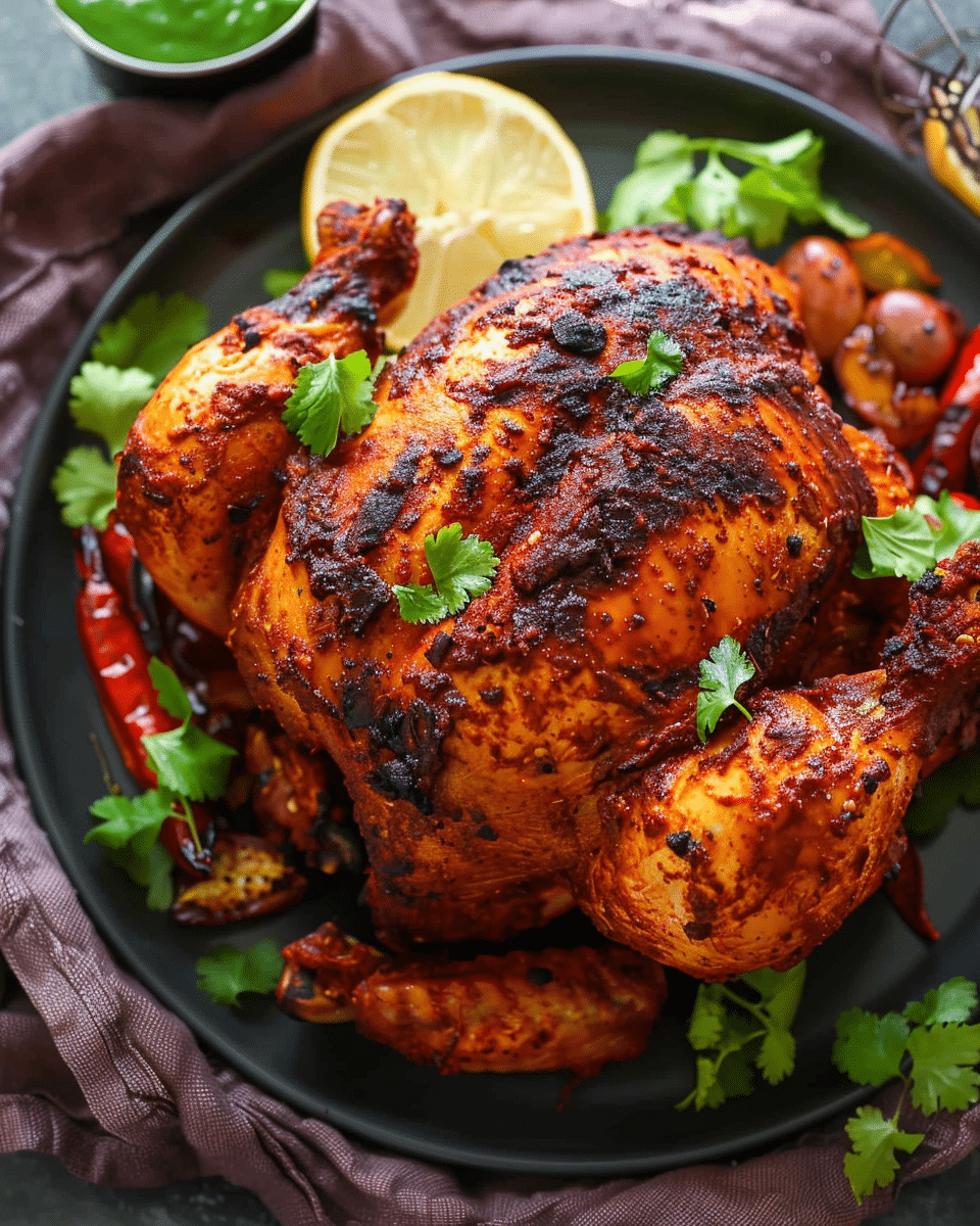 Air Fryer Whole Tandoori Chicken is a bold‑flavored, Indian‑inspired dish where a whole chicken is marinated in spiced yogurt and cooked in the air fryer until the skin is crisp and the meat is juicy.