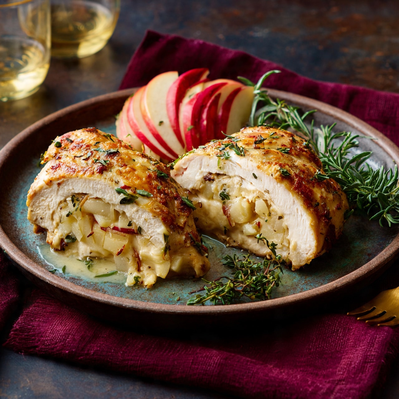 Tender baked chicken breasts stuffed with sweet apple slices and creamy melted brie, creating a comforting and elegant dish with balanced savory and sweet flavors.