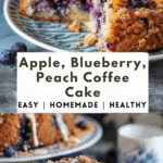 A tender, fruit-packed coffee cake made with apples, blueberries, and peaches, topped with a buttery crumb for the perfect breakfast or dessert treat.