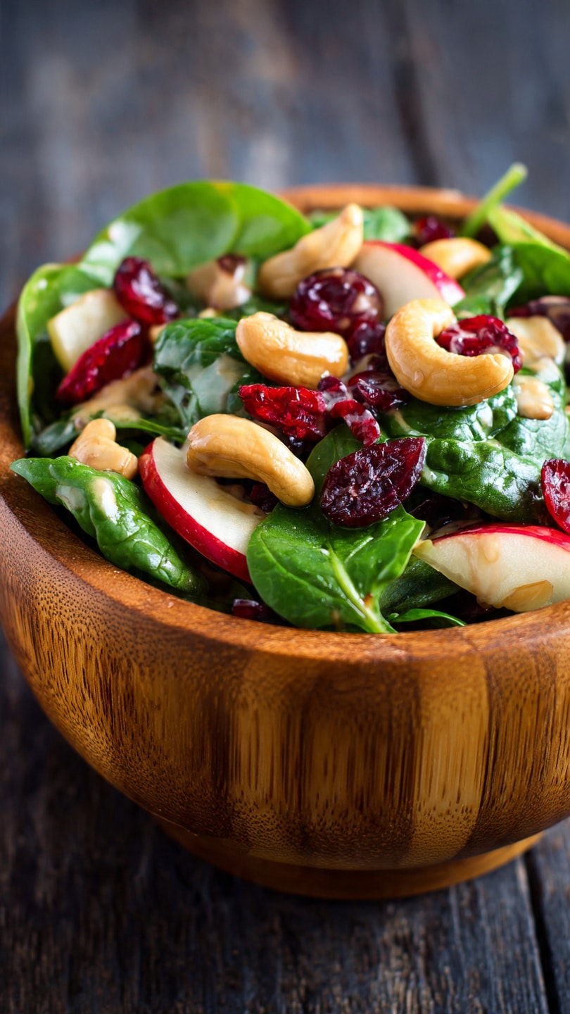 I love this recipe because it’s fresh, fast, and flexible. The tart-sweet cranberries pair beautifully with juicy apples, and the baby spinach gives it a soft, earthy base. A light vinaigrette ties it all together, making it a great option for holidays, potlucks, or a quick weekday lunch. It’s one of those salads I never get tired of—especially in the fall and winter months.