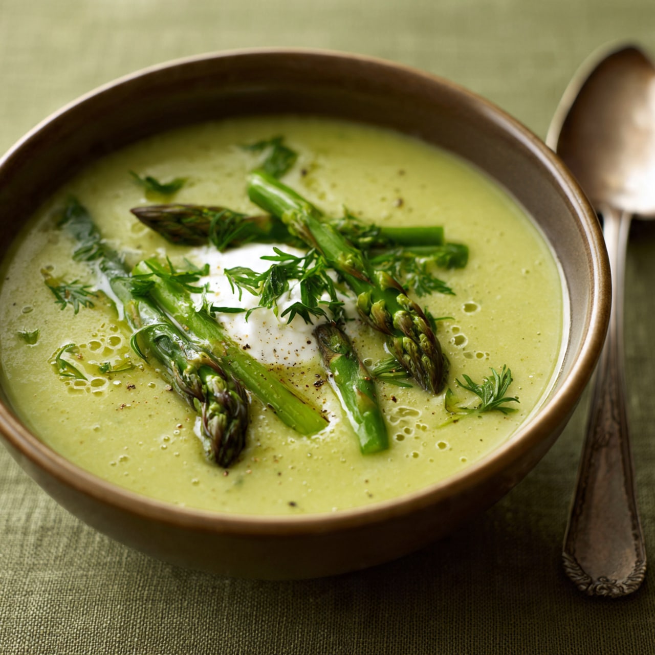A light, fresh, and comforting asparagus soup with a smooth texture, delicate flavor, and vibrant green color. Perfect as a starter or a simple meal with crusty bread.