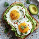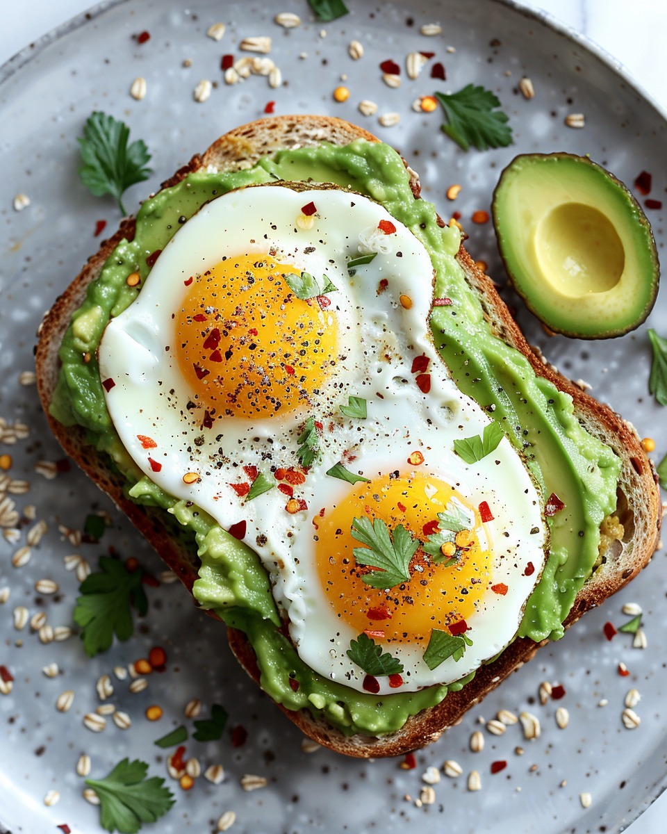 I start by toasting the bread until it’s golden and crisp. While the bread toasts, I cook the eggs the way I like them, usually fried or poached. I mash the avocado in a bowl with a pinch of salt, pepper, and a little lemon juice if I want brightness. I spread the avocado generously over the toast, then place the eggs on top. I finish with extra seasoning and red pepper flakes if I want a little heat.