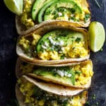 Avocado Tomatillo Breakfast Tacos are a flavorful and satisfying morning meal made with fluffy scrambled eggs, creamy avocado, and zesty tomatillo salsa. Wrapped in warm tortillas and topped with your favorite garnishes, they’re quick to make and full of bold, fresh flavor.