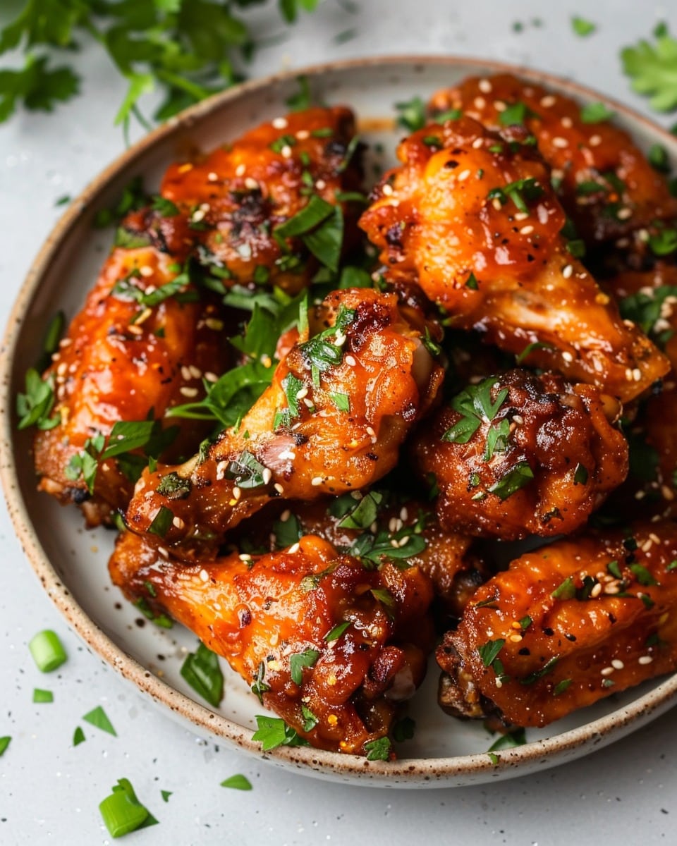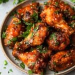 I store leftover wings in an airtight container in the fridge for up to 3 days. To reheat, I bake them at 400°F (200°C) for about 10–12 minutes until hot and crispy again. I avoid the microwave since it softens the skin.
