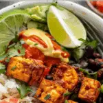 Sometimes I swap the tofu for roasted sweet potatoes or tempeh. I also like switching up the grains—quinoa or farro make great bases. For a smoky kick, I add chipotle in adobo to the tofu marinade. If I’m in a rush, I use pre-cooked rice and canned beans for a super fast assembly.