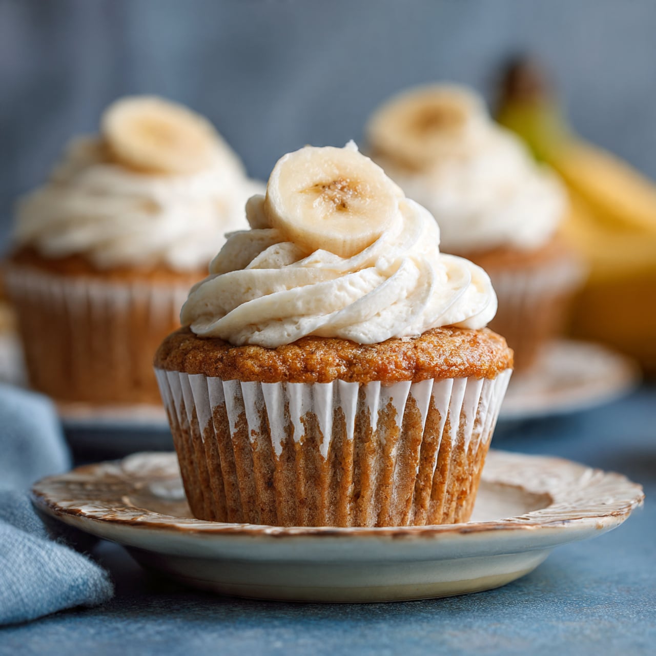 Soft and moist banana cupcakes made with ripe bananas for natural sweetness and tender texture, perfect plain or topped with cream cheese frosting.
