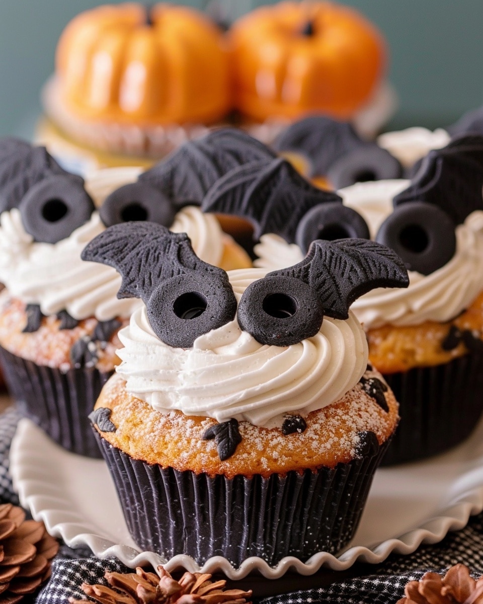 These Bat Cupcakes are the ultimate Halloween party treat — chocolatey, moist cupcakes topped with spooky bat decorations made from cookies, candy eyes, and frosting. Fun to make, easy to decorate, and guaranteed to be a hit with kids and adults alike.
