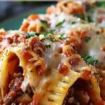 Comforting Beef & Cheese Stuffed Pasta Tubes filled with seasoned ground beef and creamy cheeses, then baked in rich marinara sauce until bubbly and golden. A hearty, crowd-pleasing classic perfect for family dinners.