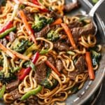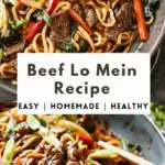 This beef lo mein recipe is a flavorful, satisfying noodle dish that’s quick to prepare and full of savory, saucy goodness. Tender slices of beef are stir-fried with colorful vegetables and tossed with perfectly cooked lo mein noodles in a rich, umami-packed sauce. I love how it comes together in under 30 minutes and tastes just like my favorite takeout — but even fresher.