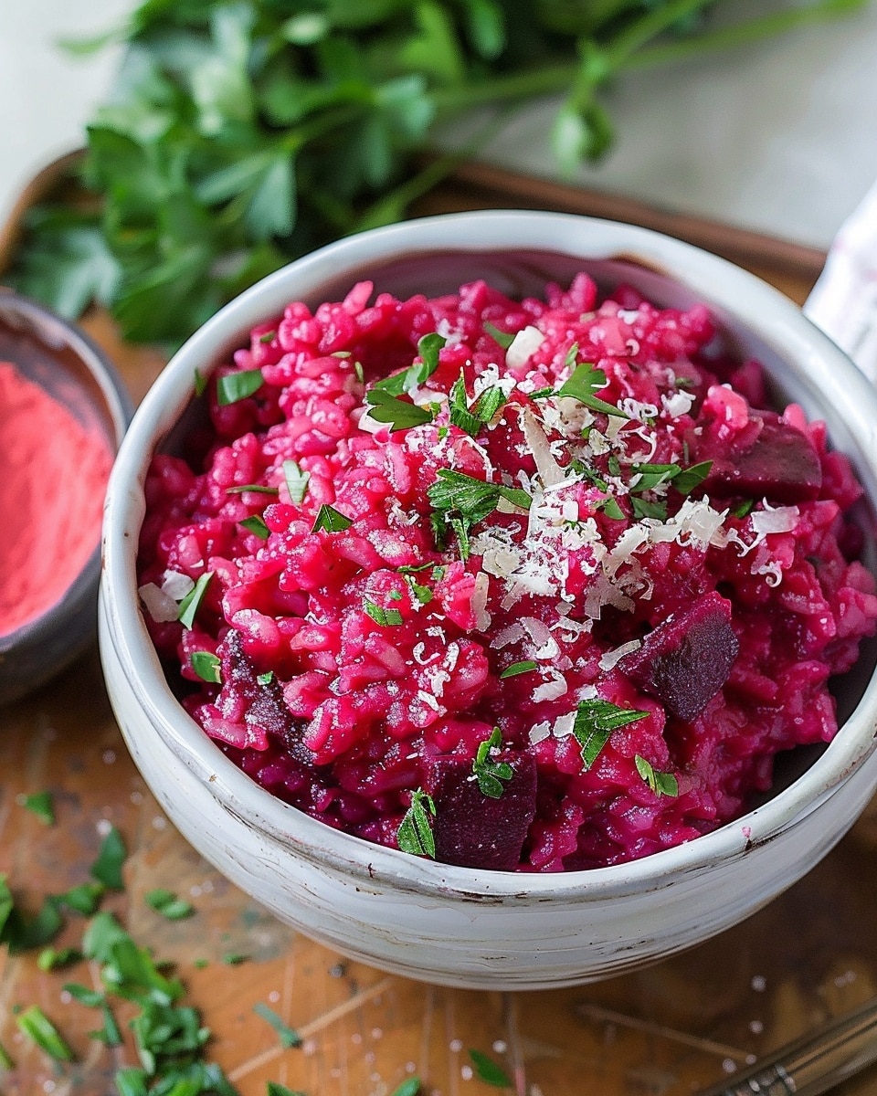 Beet Risotto is a vibrant, creamy dish that combines the earthy sweetness of beets with the rich texture of arborio rice. Its stunning pink color and subtle depth of flavor make it a standout meal that feels fancy but is simple enough for a weeknight.