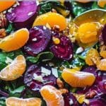 Beet Salad with Spinach, Mandarins, and Honey-Mustard Lemon Dressing is a colorful, refreshing mix of earthy beets, juicy citrus, and tender greens, all tossed in a zesty homemade dressing. It’s perfect as a light lunch, dinner, or vibrant side dish.