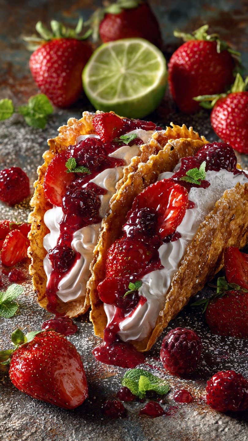 I love making these Berrylicious Cheesecake Tacos when I want a dessert that looks impressive but is actually very simple to prepare. They’re creamy, fruity, and fun to eat, combining crisp taco shells with a smooth cheesecake filling and fresh berries.