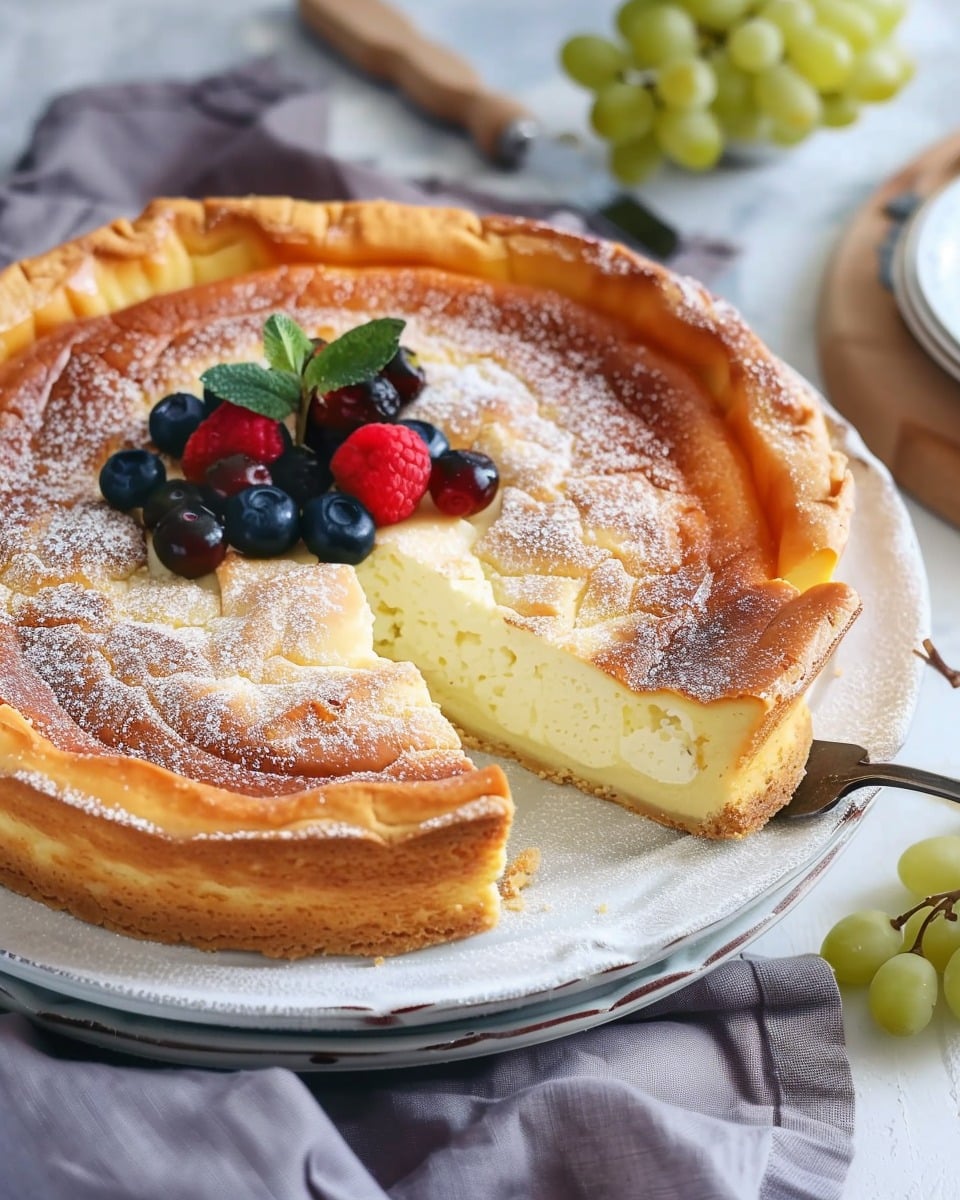 An authentic German cheesecake (Käsekuchen) that’s light, creamy, and delicately sweet, made with quark for a soft, airy texture and classic flavor.