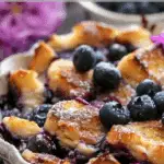 Blueberry French toast casserole is a comforting, make-ahead breakfast bake made with cubes of soft bread soaked in a vanilla-cinnamon custard, loaded with blueberries, and finished with a warm blueberry topping. It’s perfect for brunch, holidays, or a special weekend treat.