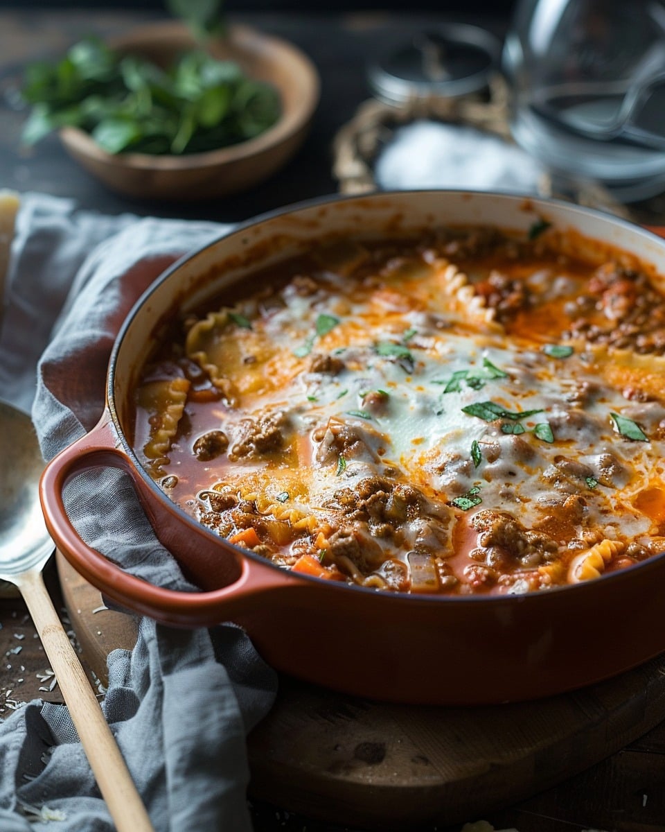 I love how this soup brings all the flavors of traditional lasagna together in a fraction of the time. It’s rich, cheesy, and deeply satisfying, and I only need one pot to make it happen. There’s no need to pre-cook the noodles, and the cleanup is a breeze. I also like how easy it is to customize—whether I’m adding veggies, using a different meat, or tweaking the spice level, it always turns out delicious.