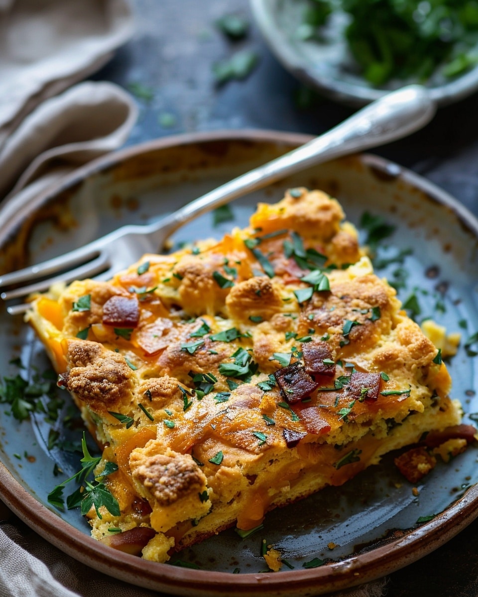 I love this recipe because it brings together everything I want in a breakfast: protein, veggies, cheese, and carbs—all baked in one dish. The homemade biscuit topping turns golden and crisp on top while staying soft underneath, soaking up the egg mixture without getting soggy. It’s super versatile, easy to prepare, and always a hit with family or guests. I also appreciate that it can be made ahead and reheated throughout the week.