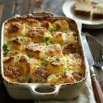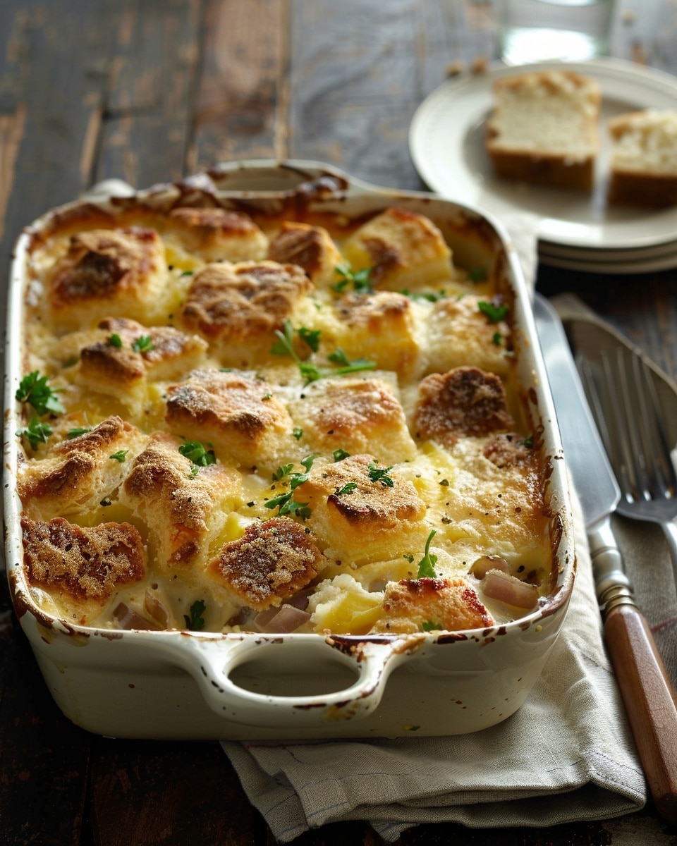 - Bake for 45–50 minutes until biscuits are golden and casserole is set. Let cool 5–10 minutes before serving.