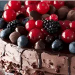 Black Forest Chocolate Mousse Cake is a luxurious layered dessert combining rich chocolate cake, silky chocolate mousse, and sweet-tart cherries. Perfect for special occasions, it’s a beautiful, decadent treat that’s both indulgent and elegant.