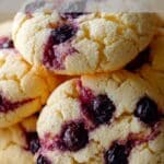 Soft and tangy blueberry cheesecake cookies that combine creamy cream cheese dough with juicy blueberries for a decadent, crowd-pleasing treat.
