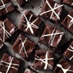 This recipe makes about 16 standard brownies or more if I cut them smaller for gifting. It takes me about 15 minutes to prep and 25–30 minutes to bake, so the whole process is done in under an hour.