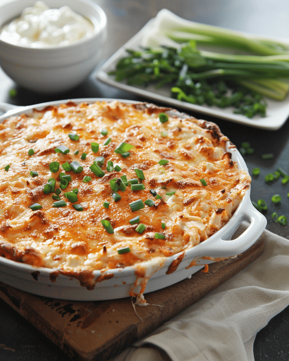 I love how quick and easy this dip is to make—it comes together with just a few ingredients and always disappears fast. The combination of shredded chicken, tangy buffalo sauce, creamy ranch or blue cheese dressing, and lots of melted cheese makes it absolutely irresistible. It’s a crowd-pleaser that I can prep ahead of time and pop in the oven right before guests arrive.