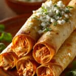 Crispy, spicy Buffalo Chicken Taquitos filled with shredded chicken, creamy cheese, and zesty buffalo sauce, baked or air-fried to golden perfection for an easy, crowd-pleasing meal or snack.