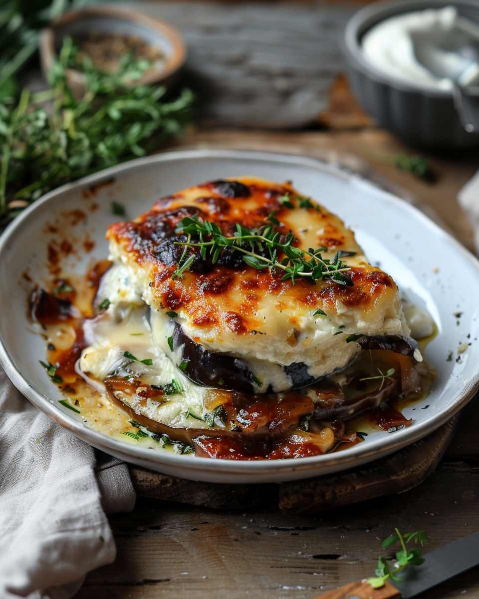 I think this Burrata Eggplant Parmigiana with Caramelized Onions & Parmesan Cream is a rich and comforting dish that feels both elegant and satisfying. I love how the creamy, savory, and slightly sweet flavors come together in every bite. When I want to make something special at home, this is a recipe I always enjoy preparing.