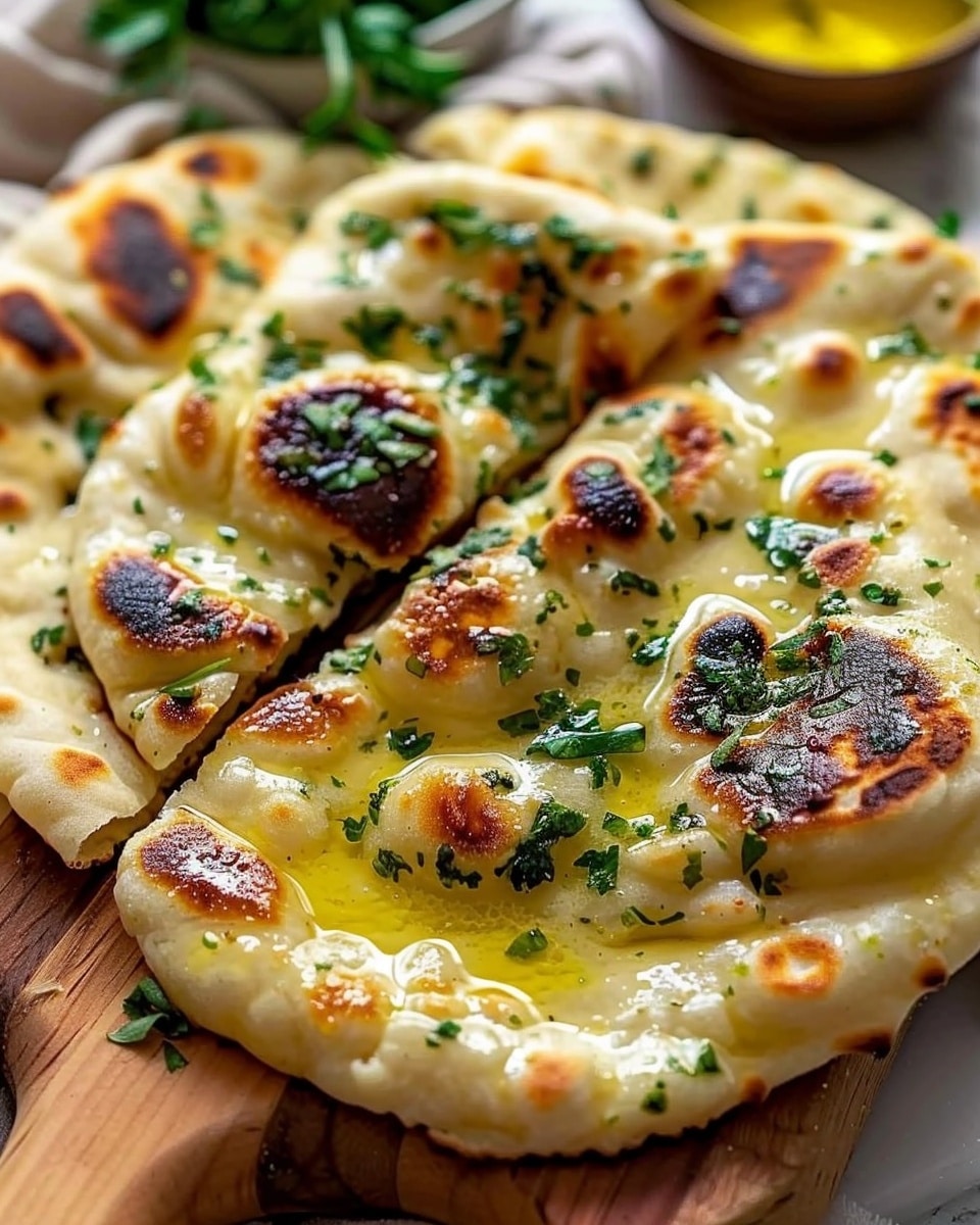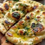 Buttery Garlic Naan Bread is a soft, fluffy flatbread brushed with melted butter and fresh garlic. This homemade naan is perfect for scooping up curries, wrapping around fillings, or enjoying on its own warm from the skillet.