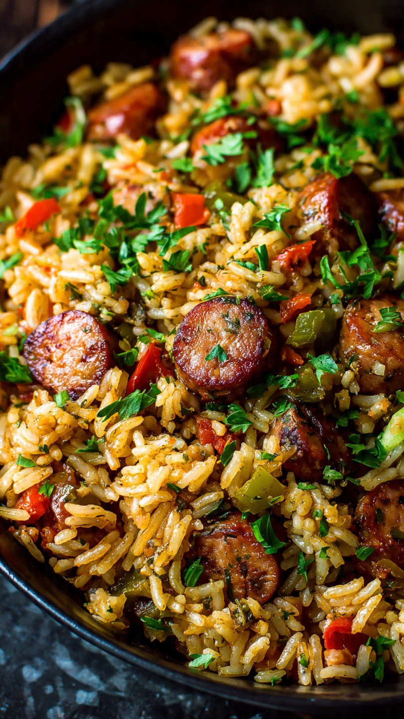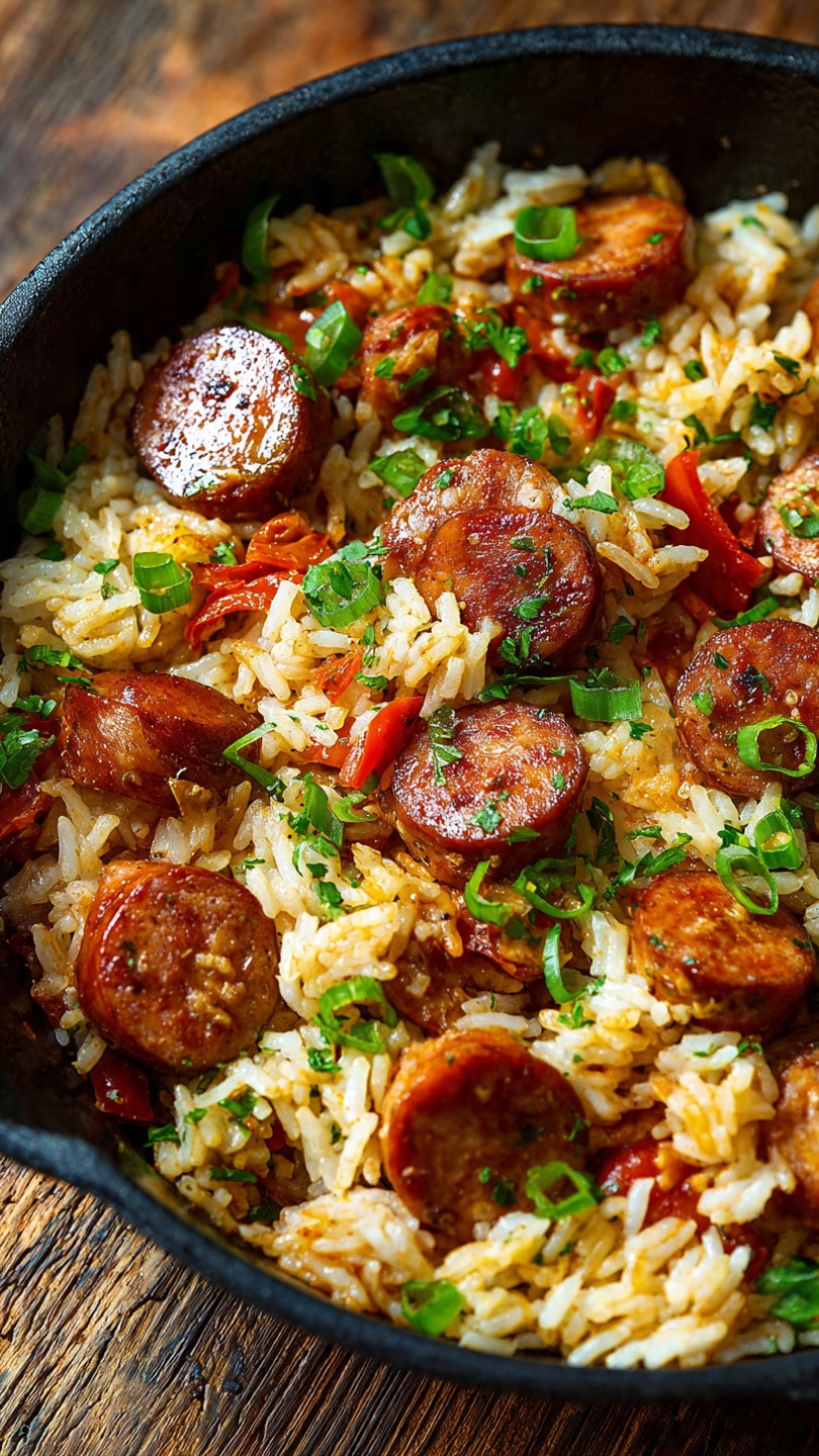 This Cajun Sausage and Rice Skillet is a bold, one-pan meal featuring smoky sausage, aromatic veggies, and perfectly seasoned rice. It’s quick, hearty, and full of spicy, comforting flavor—perfect for busy weeknights or meal prep.