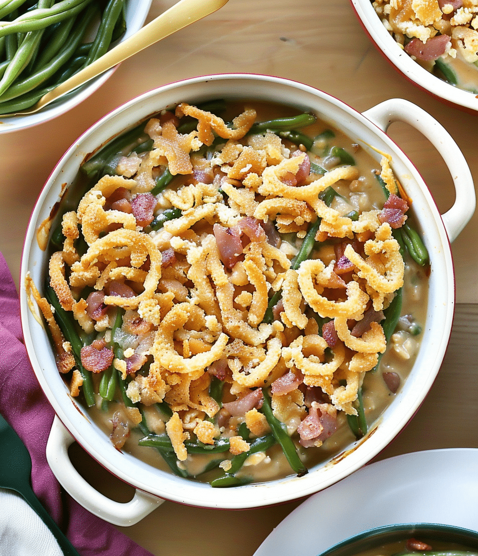 Campbell’s Green Bean Casserole is a classic holiday side dish made with tender green beans, creamy mushroom soup, and crispy fried onions. Ready in under 40 minutes with just a few pantry staples, this comforting, fuss-free recipe is a crowd favorite for Thanksgiving, Christmas, or everyday family dinners.