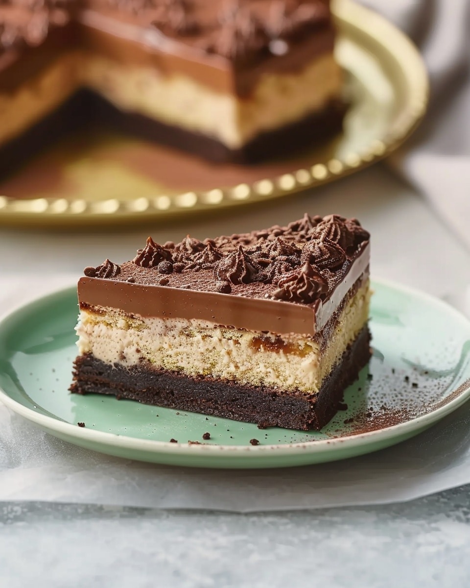 I love how this cake combines all my favorite textures—soft cake, airy mousse, sticky caramel, and a crisp chocolate topping. It’s a show-stopping dessert that looks like it came from a bakery, but I can make it right in my kitchen. The mousse is light and creamy, balancing the richness of the caramel and chocolate layers. Plus, it’s versatile enough to use different candy bars, so I can switch it up depending on what I have on hand or what I’m craving.
