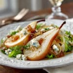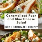An elegant Caramelized Pear and Blue Cheese Salad featuring sweet golden pears, tangy blue cheese, crisp greens, and crunchy nuts tossed in a simple balsamic Dijon dressing. It’s a beautiful balance of sweet and savory flavors.