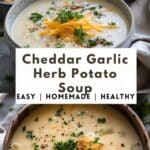 PrintCheddar Garlic Herb Potato Soup