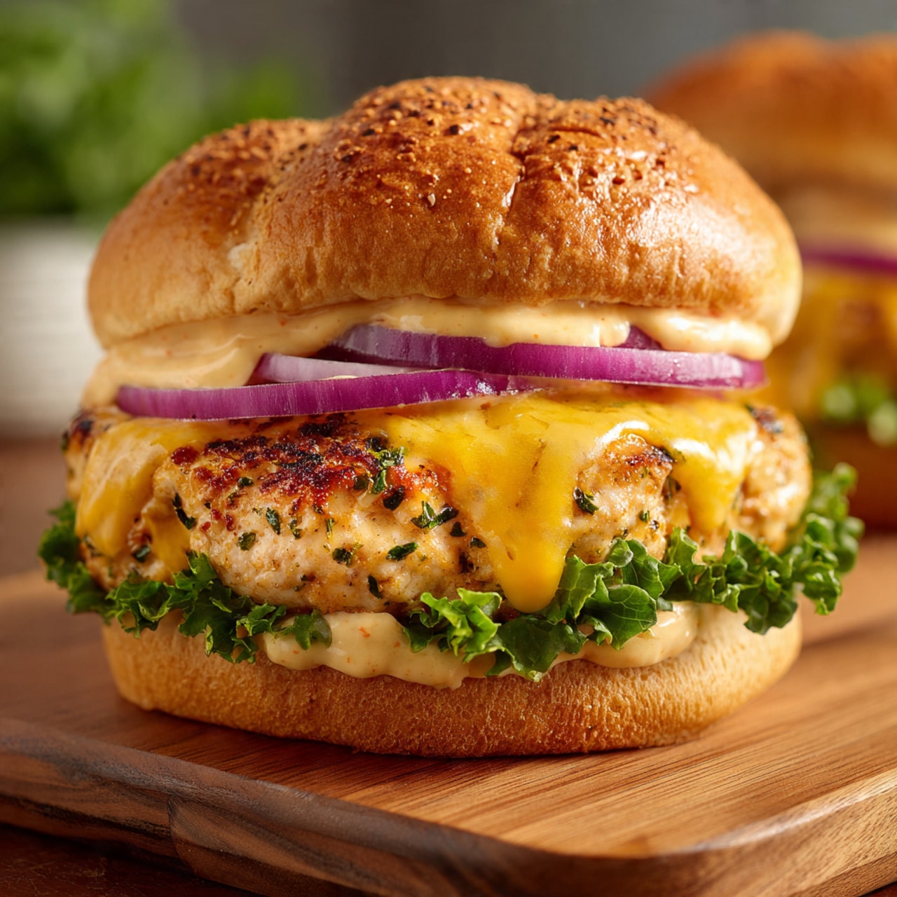 I appreciate how these burgers are easy to prepare while still feeling special. The ranch seasoning adds a herby, tangy flavor that pairs perfectly with the melted cheddar. I also like that ground chicken keeps the burgers lighter while still being juicy and filling. This is a recipe I often make when I want a quick meal that everyone enjoys.