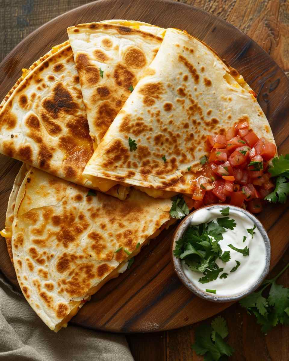 Crispy and cheesy quesadillas with a golden cheese crust on the outside, adding extra flavor and crunch. This quick and satisfying dish is easy to customize with your favorite fillings.