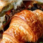 Cheesesteak Croissants are a delicious twist on the classic Philly cheesesteak. I take buttery, flaky croissant dough and fill it with tender shaved beef, sautéed onions and peppers, and melty provolone or American cheese. The result is a portable, savory pastry that’s perfect for lunch, dinner, or even game day snacks.