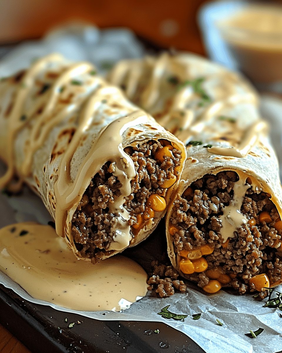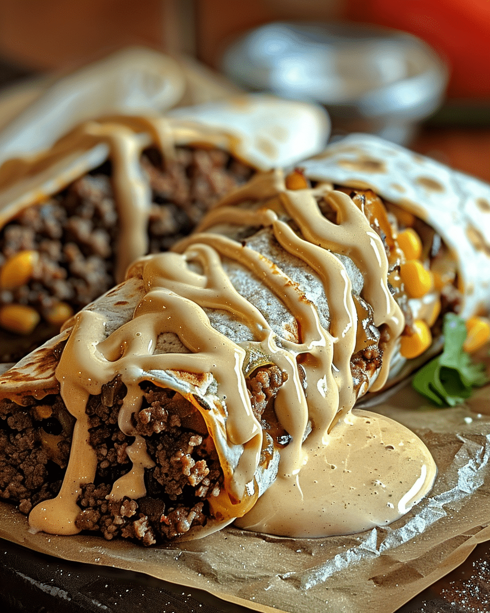 PrintCheesy Ground Beef Delight Wrap with Creamy Sauce