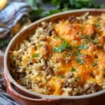 This cheesy hamburger rice casserole is the ultimate comfort food—hearty, creamy, and loaded with ground beef, tender rice, and melty cheddar cheese. Made with pantry staples and minimal prep, this family-friendly dinner is perfect for busy weeknights, meal prep, or anytime you’re craving something warm and satisfying.