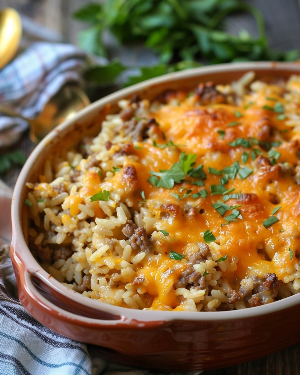 Cheesy hamburger rice casserole is one of those classic comfort meals I love turning to when I need something hearty, simple, and totally satisfying. It’s packed with seasoned ground beef, tender rice, gooey cheese, and a creamy base that pulls everything together. Whether I’m feeding the family or prepping leftovers for the week, this casserole always delivers warm, cozy flavor in every bite.