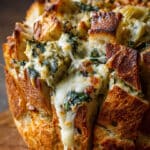 Cheesy spinach and artichoke pull-apart sourdough bread is a warm, gooey appetizer that combines the flavors of a creamy dip with the texture of crusty bread. Perfect for sharing, it’s stuffed with cheese, spinach, and artichokes, then baked until golden and melty.