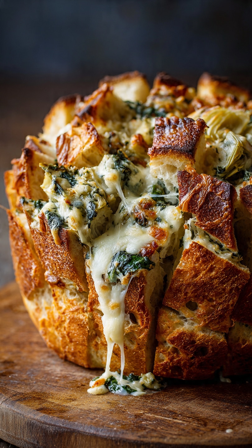 Cheesy spinach and artichoke pull-apart sourdough bread is the kind of appetizer that steals the show. It’s warm, cheesy, packed with flavor, and just plain fun to eat. Whether I’m hosting a party or just treating myself, this dish never fails to impress—and it always disappears fast.
