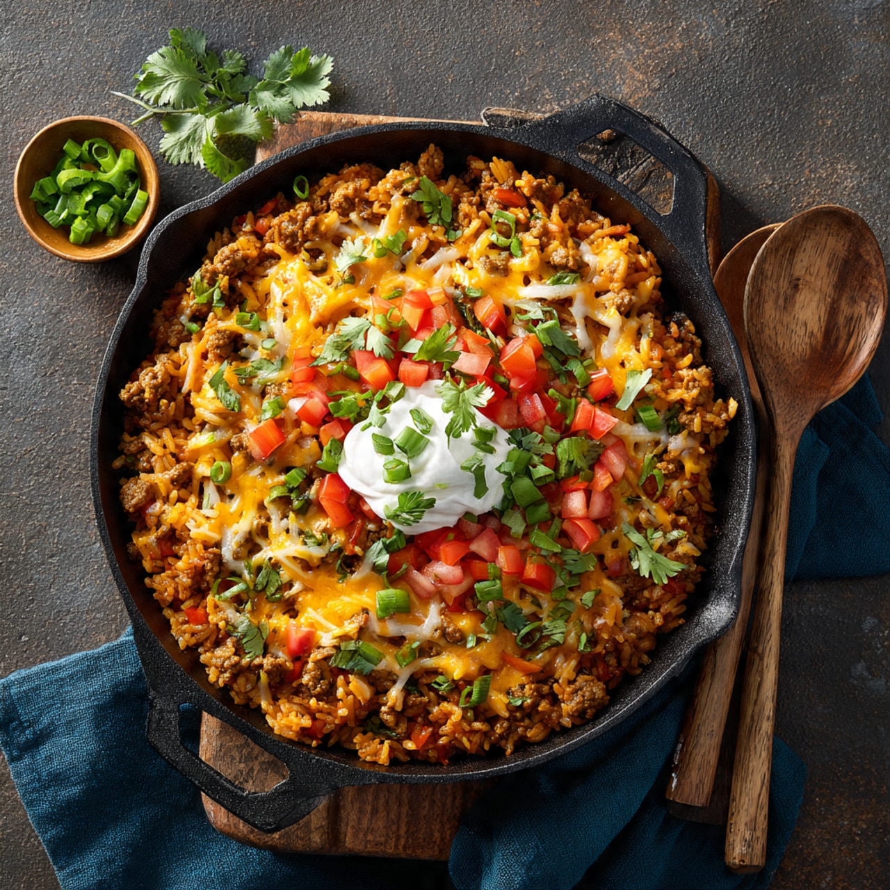 A quick and comforting one-pan meal featuring seasoned ground beef, tender rice, and melted cheese, packed with bold taco flavors and perfect for busy weeknights.