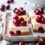 I store the bars in an airtight container in the fridge for up to 5 days. They can also be frozen without the cherry topping for up to 2 months—once thawed, I add the fruit before serving. I don’t reheat them; I serve them chilled or at room temperature.