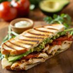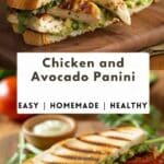 A warm and crispy chicken and avocado panini filled with juicy chicken, creamy avocado, and melted cheese. This quick and satisfying sandwich is perfect for lunch or a light dinner.