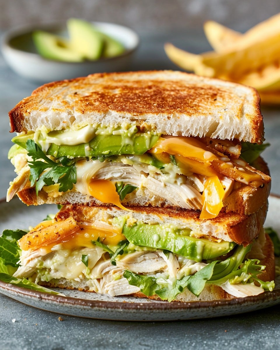 I love how this sandwich balances creamy avocado and melted cheese with savory, tender chicken. It’s a great way to use up leftover chicken or rotisserie meat, and it’s super customizable based on what I have in the fridge. I can make it in a skillet, panini press, or even in the oven—easy, comforting, and seriously delicious.